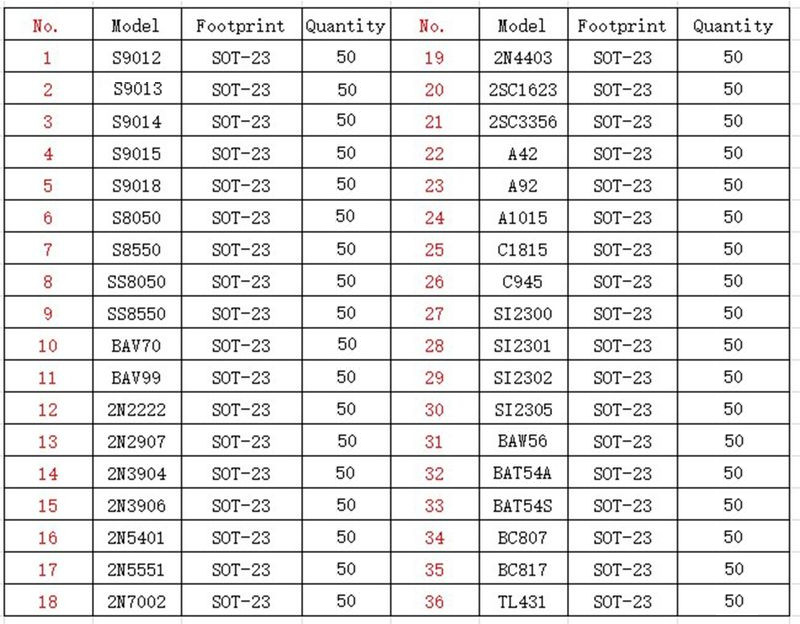 1800 Pieces 36 Types SOT-23 SMD Transistor Set Book