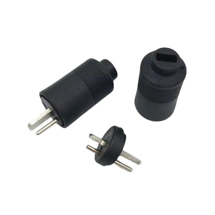 The male plug has a diameter of 15 mm and a length of 32 mm, including the pin.