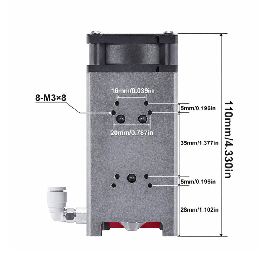 Lazerin yanında 30L/min ayarlanabilir hava pompası bulunmaktadır. Hava desteği sayesinde ahşap ve türevi malzemelerde kesme-işleme yaparken yanık izi oluşturmadan işlemi tamamlamaktadır.