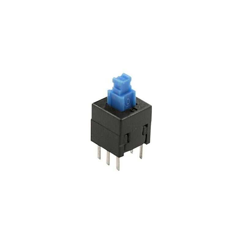 It is a button with a 6-pin switch. Color: Black-BlueDimensions: 8x8mmButton Height: 5mmTerminal: 6 pinsCurrent/Voltage: 0.3A/60V AC - 1.5A/25V ACSIMILAR PRODUCTS