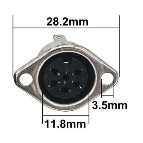 7 Pin Dişi DIN Konnektör - Flanşlı Panel Tipi.Elektronik müzik aletlerinde SYNC veya MIDI arabirimi olarak kullanabileceğiniz flanşlı panel tipi konnektördür.