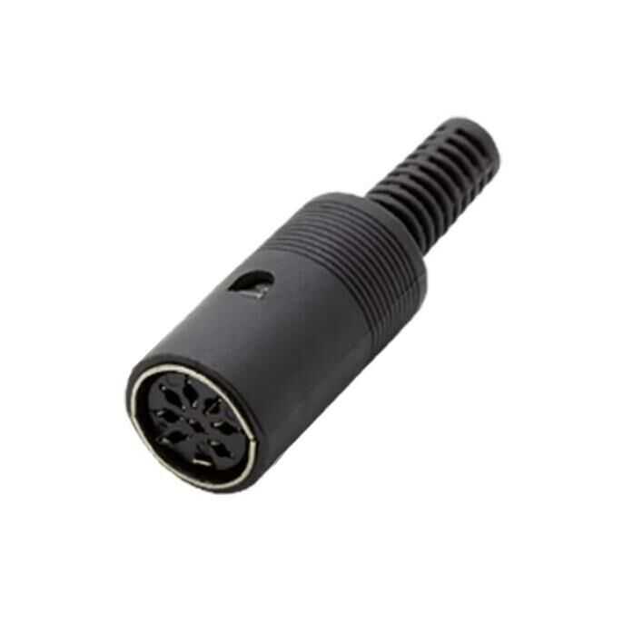 8 Pin Female DIN Connector. It is the connector used for SYNC or MIDI interface in electronic musical instruments and for peripherals or power connectors in computers.