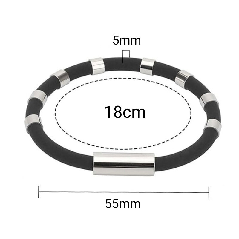 The 8 Ring Negative Ion Antistatic Silicone Bracelet - 180mm is used to discharge static electricity in the human body and prevent static electricity from the body from being transmitted to the accessories and causing interference when the accessories are touched. It is widely used in various sectors such as LED touch screens, communication electronics, electronic manufacturing, electronic instruments, PCB boards, etc.