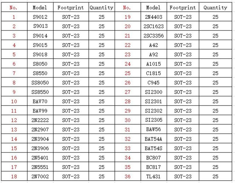 900 Pieces 36 Types SOT-23 SMD Transistor Set Book