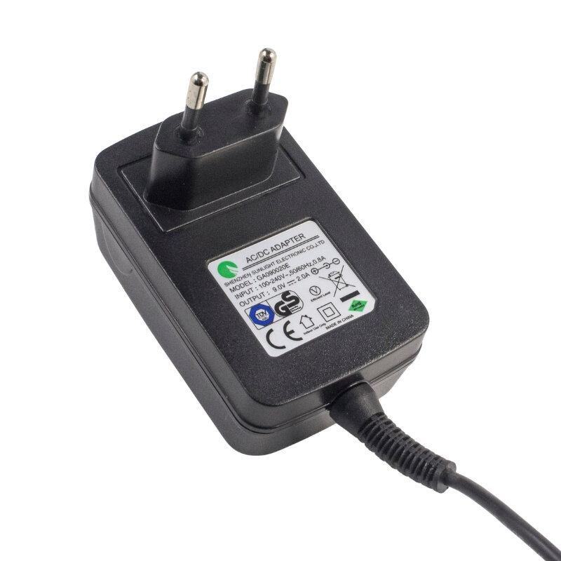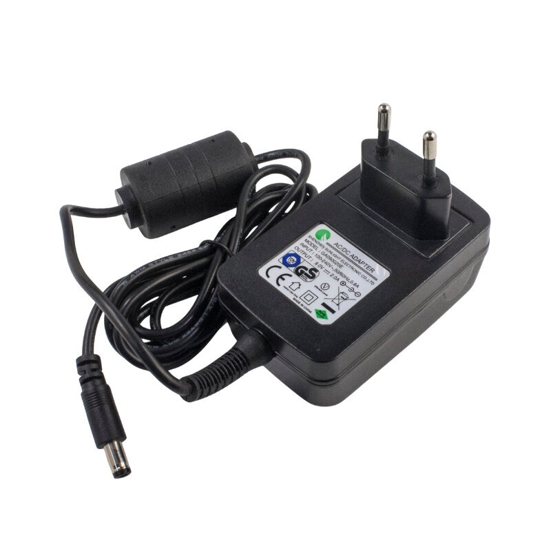 9V 2A Adapter - GA090020E. It has a total length of approximately 1.5 meters including the cable and adapter. It can be used with 9V electronic products requiring up to 2A of current. The socket tip is 5.5x2.1mm. Adapter case dimensions are 80x48.5x34mm.