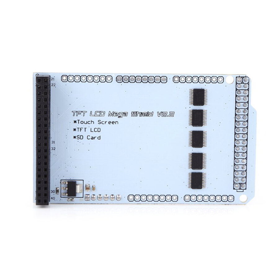 Arduino Mega 3.2" TFT LCD Ekran Shield, Bu shield 16 bit modunu destekler. Arduino Mega kartı, SD kart ve Dokunmatik ekran işlevini aynı anda kullanmak için yeterli pin sayısına sahiptir.
