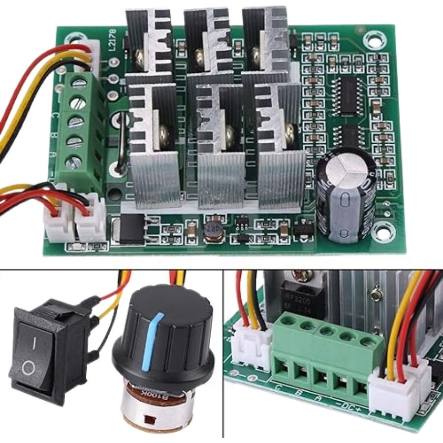 Üzerinde bulunan 100K anahtarlı potansiyometre ile 0'dan 100'e motorun hızını ayarlayabilirsiniz.