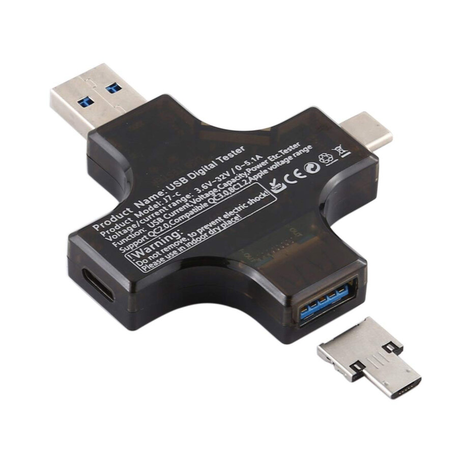 Çok İşlevli Type-C+USB Dijital Test Cihazı, elektronik cihazlar için USB şarj cihazlarını ve taşınabilir güç kaynaklarını kontrol etmek için kullanılır. USB soketinden geçen voltaj ve akımı kontrol etmenizi, kapasiteyi, enerjiyi, gücü, sıcaklığı ve empedansı kontrol etmenizi sağlar. Test cihazı, USB 3.0 tip A fişi, USB tip C, USB 3.0 tip A soketi, USB tip C, mikro USB ve geniş görüş açılı, net IPS 0,96 inç LCD ekranla donatılmıştır. USB ile çalışan herhangi bir cihazın şarj durumunu izleme alanında yaygın olarak kullanılacaktır.
