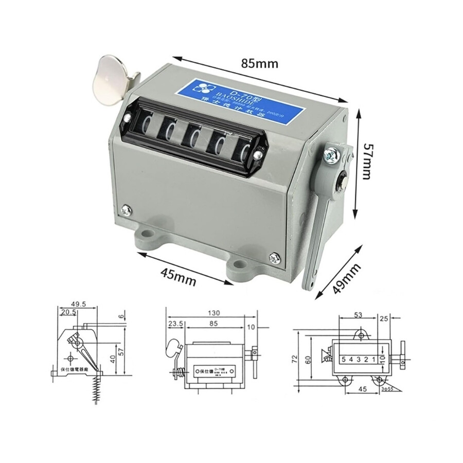 Notify me when its in stockD-70 5 Digit Manual Pull Mechanical Counter, is a manual counter designed for compact size and minimum space requirement. It can be applied to various scenarios such as machinery, electrical, textile, chemical, food and other industries. Counting can be done manually by pushing the lever or by pulling it by connecting a spring.