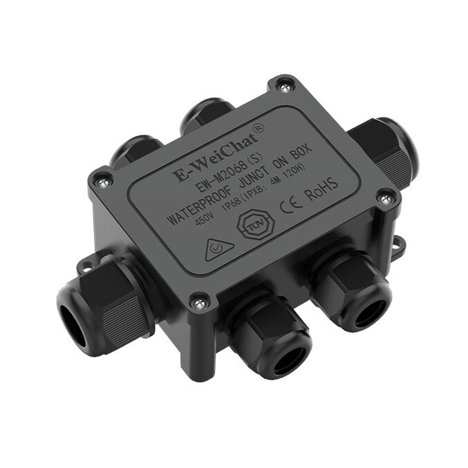 The EW-M2068S-6T 6-Way Waterproof Cable Junction Box ensures error-free installation. Glands at the box's connection points simplify installation. Integrated cable glands with milled teeth allow for the installation of small-section cables.