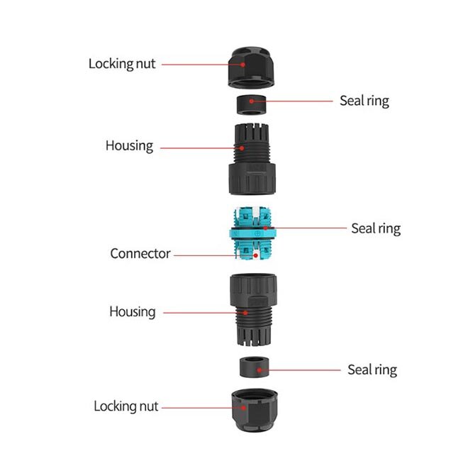 E-Weichat waterproof connectors are designed for easy installation and maintenance with their plug-and-play design. They also feature a self-locking mechanism to ensure secure connections. Additionally, these connectors offer properties such as high-temperature resistance, low-temperature resistance, and chemical resistance, making them suitable for a variety of harsh environmental conditions.