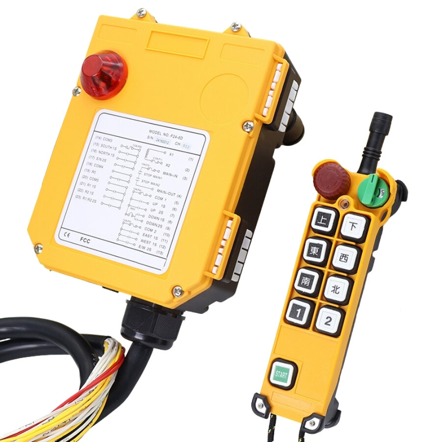 F24-8D AC/DC 24V-440V Endüstriyel Vinç Kablosuz Uzaktan Kumanda Seti, genellikle endüstiryel vinç, ağır iş makineleri, otomasyon sistemler veya depolama lojistik gibi yerlerde kullanılan uzaktan kumanda setidir.