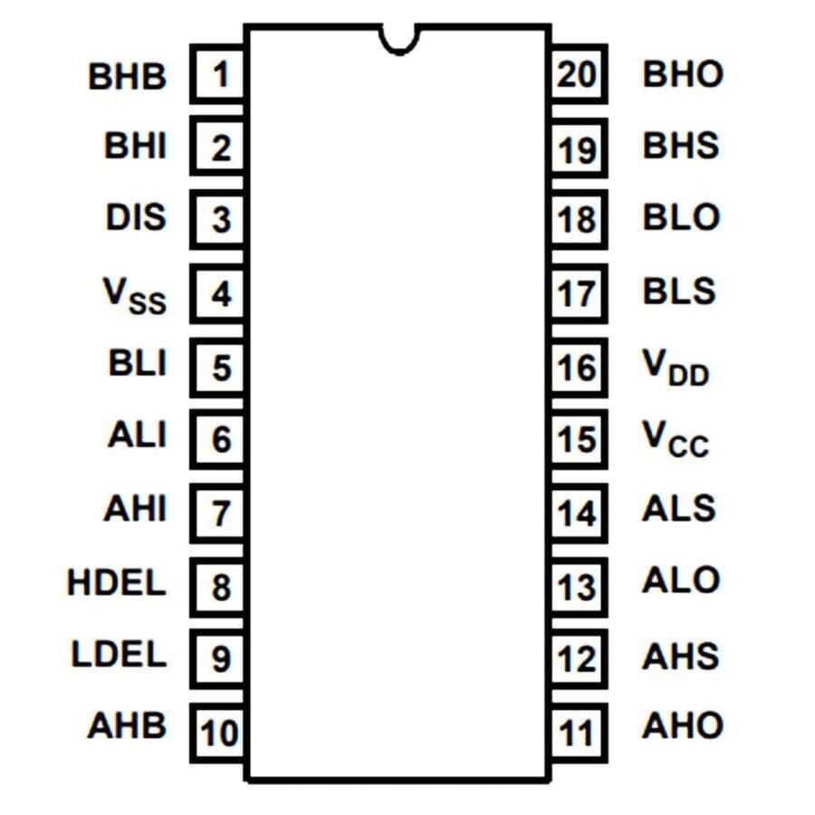 HIP4081A is a high frequency, medium voltage Full Bridge N Channel FET driver in a 20-lead plastic SOIC and DIP package IC. The HIP4081A can operate every possible switch combination except those that cause a transition state. The HIP4081A can switch at frequencies up to 1 MHz and is well-suited for driving Voice Coil Motors, high-frequency switching power amplifiers and power supplies.