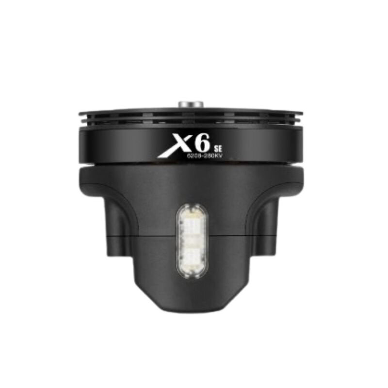 The Hobbywing X6-SE 280KV Drone Motor - CW is a brushless DC motor designed as part of an integrated propulsion system for drone training and education applications. With a frame size of 6208 and a rating of 280KV, this clockwise (CW) rotating motor offers reliable performance for medium-lift quadcopter builds and, when paired with 2270 propellers, provides a maximum thrust of 6.2 kg per rotor.