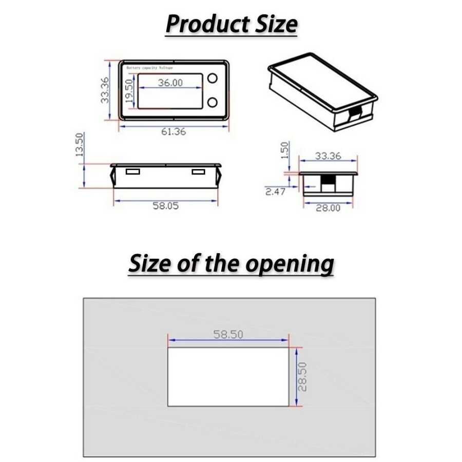 JS-C33 DC 10-100V Lithium Battery / Battery Capacity Indicator. It is a product that allows you to monitor the voltage values and charge rates of lithium batteries and accumulators. The type of battery you want to measure is selected using the function keys on it and the measurement is performed. The screen is colored.