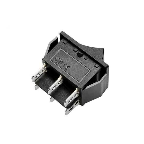 It is a 6-pin non-illuminated open rocker switch type. It is widely used in electronic devices and home appliance control.