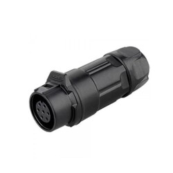 It is a 5-pin male connector for power applications. Compatible with 18 AWG cable. The LP series is one of the best-selling series waterproof connectors made of high-performance plastics. Quick-plug plug design allows one-handed plugging/unplugging. The connection pins adopt gold plating technology, which can resist corrosion and is suitable for high-low temperatures. LP-12 series connectors are widely used in various harsh environments and situations such as audio-visual equipment, medical equipment, industrial control, inspection and measurement due to their small size, flexible operation and automatic plugging and unplugging. With compact components, simple operation, fast and stable connection, IP67-rated outdoor waterproof performance, it meets the environmental protection requirements of international industrial equipment.