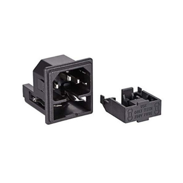 LZ-14-F8 Çift Sigortalı Üçlü Erkek Power Soketi, Üçlü erkek power kablolarla uyumlu Sigorta Yuvalı soket. Üzerinde yer alan sigorta yuvası sayesinde istediğiniz akım değerinde sigorta ekleyerek akım koruma sağlayabilirsiniz. Ürün dahilinde sigorta yoktur.