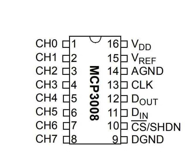 The MCP3008 10-bit Analog-to-Digital Converter (ADC) combines high performance and low power consumption in a small package, making it ideal for embedded control applications. The MCP3008 features a sequential register (SAR) architecture and an industry-standard SPI serial interface that allows 10-bit ADC capability to be added to any PIC® microcontroller. The MCP3008 features 200k samples per second, 8 input channels, low power consumption (5nA typical standby, 425µA typical active) and is available in 16-pin PDIP and SOIC packages. Applications for the MCP3008 include data acquisition, instrumentation and measurement, multi-channel data loggers, industrial PCs, motor control, robotics, industrial automation, smart sensors, portable instrumentation, and home medical devices.