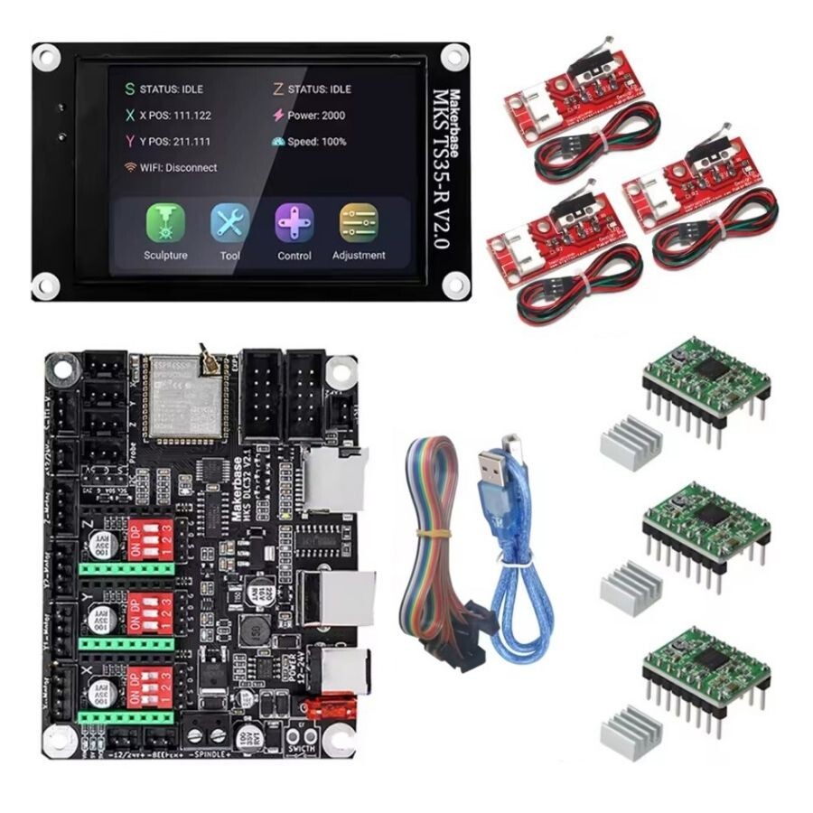 MKS DLC32 v2.0 GRBL CNC Kontrol Kartı Seti + TS35-R LCD Ekran, masaüstü lazerler ve CNC makineleri için özel olarak tasarlanmış çevrimdışı bir kontrol ünitesidir. 32 bit yüksek hızlı ESP32 modülü ve entegre WIFI işlevi ile donatılmıştır.