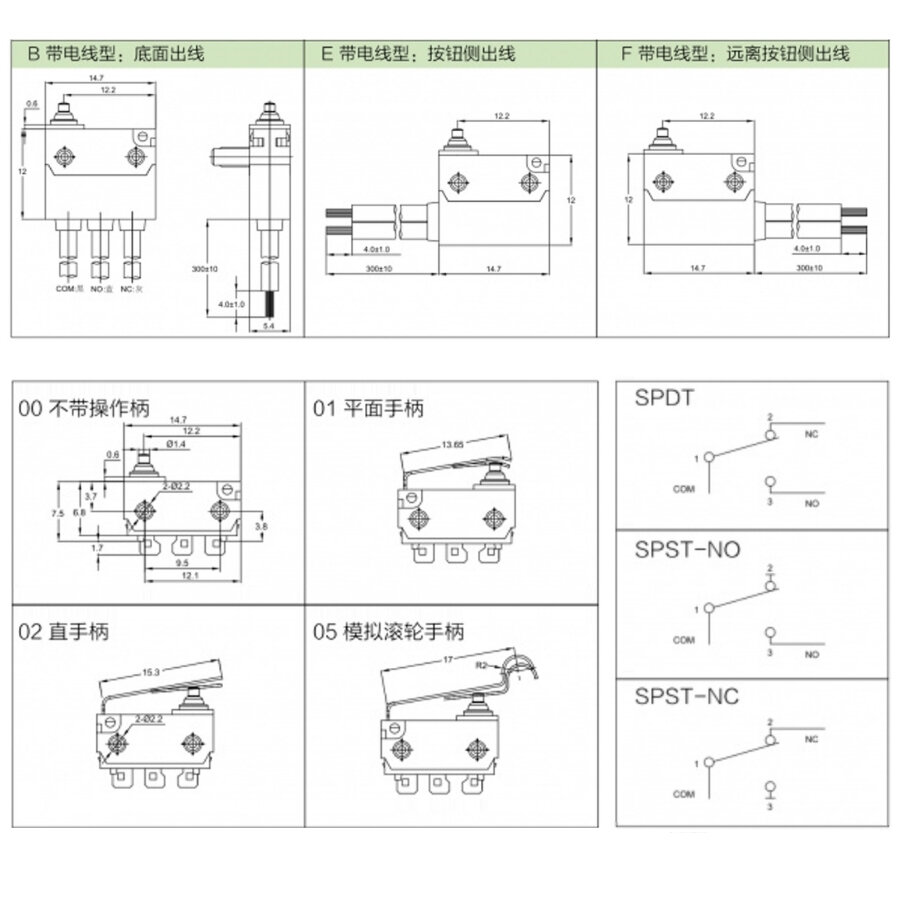 MT6-E8A02C13012-AB150 SPST NO 2-Pin Su Geçirmez Kablolu Micro Switch