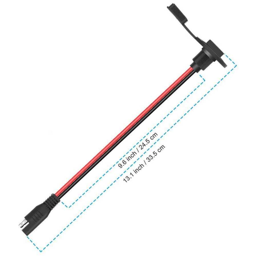 Panel Tipi Su Geçirmez SAE Konnektör - Solar Jeneratör Batarya Şarj Cihazı Uyumlu.Sae konnektör 12AWG kalın, dayanıklı ve iletken kabloya sahiptir.105°C ye kadar ısı direnci vardır.Kablo uzunluğu konnektör dahil 33,5cm'dir.