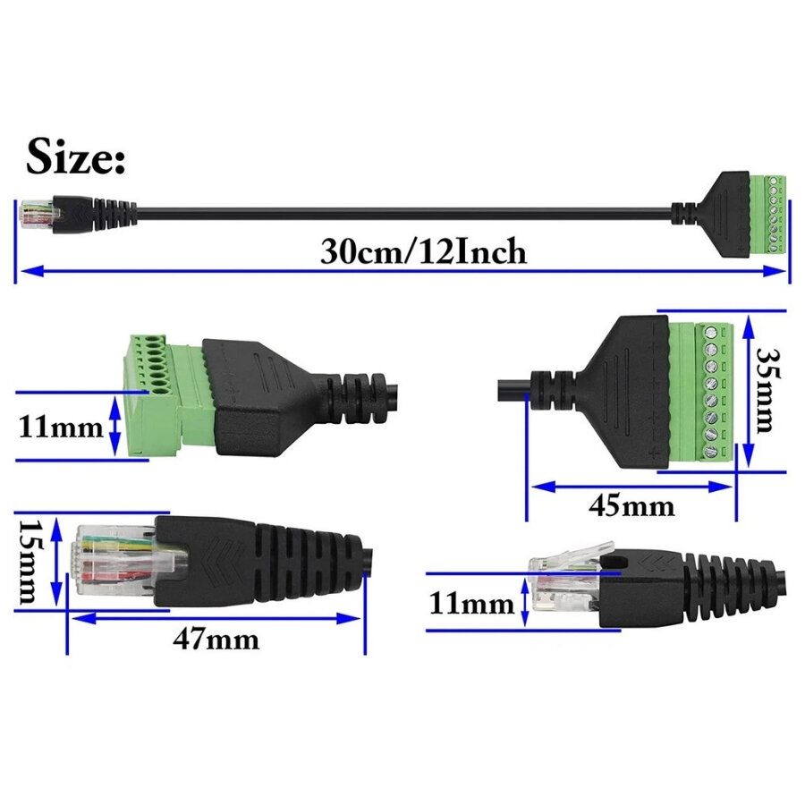 RJ45 Male - 8 Pin Screw Terminal Converter Cable - 30cm It is wired according to the EIA/TIA 568B cabling standard for structured cabling. Wireless extension, can be connected to external network cables, provides stable and solderless extension.The fixed RJ45 interface, 8-core contacts have good contact performance and the transmission signal is more stable. It is a Cat6 network cable suitable for all kinds of network environments. It is fully compatible with RJ45 network cable interfaces such as routers, laptops, TV boxes and printers.