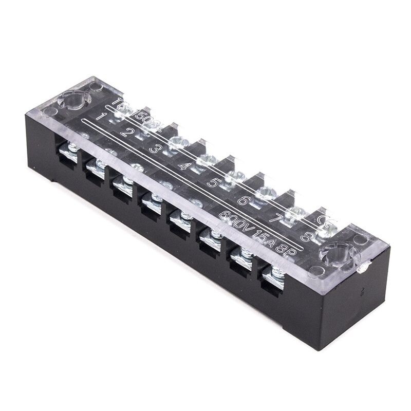 TB-1508 8P Çift Sıra Terminal Blok - 600V 15A, çift sıra terminal blokları elektrik - elektronik projelerinde kablo bağlantılarını kolaylaştırmak ve düzenli hale getirebilmek için kullanabileceğiniz bir üründür. Kabloların birbirine bağlanmasında lehimleme veya başka herhangi bir eklemeye gerek kalmadan vidalama yoluyla birleşmesini sağlamaktadır.