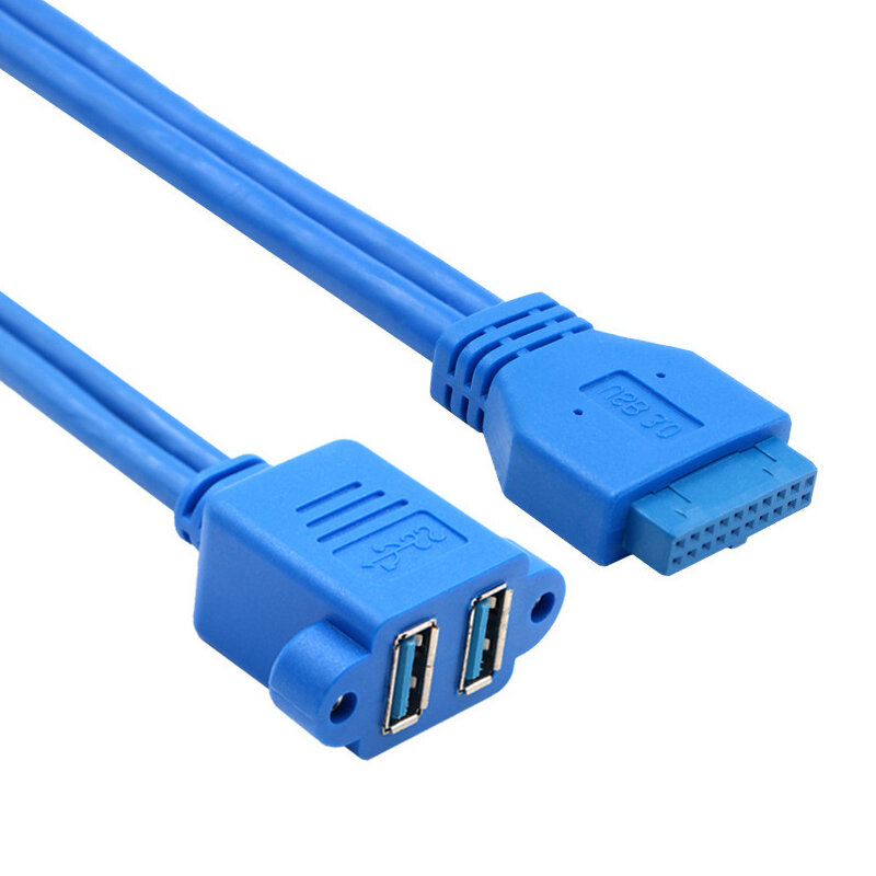 USB 3.0 19-Pin Dişi Anakart Kablosu to Çift USB 3.0 Dişi Panel Tipi Kablo, ek portlar kullanmadan PC'nize daha fazla USB 3.0 portu eklemek için kullanılabilir. Bu kablo, bir anakart başlığını çift dişi USB 3.0 sokete dönüştürür ve bunlar bilgisayarın ön paneline veya PC kasasının arkasındaki genişletme yuvalarından birine bağlanabilir.