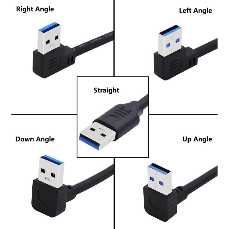 USB 3.0 Erkek-Erkek Aşağı Açılı Data ve Şarj Kablosu - 50cm, iki ucu USB-A erkek olan ve bir ucu aşağı açılı tasarıma sahip yüksek performanslı bağlantı kablosudur. Dar alanlarda kolay montaj sağlayan açılı yapısı sayesinde, anakart bağlantıları, USB hub’lar, endüstriyel sistemler ve özel kasa içi uygulamalar için ideal bir çözümdür.