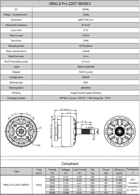 Bu 2207 boyutlu motor, yüksek mukavemetli 5 mm çelik içi boş şaft, performans için tek telli sargılar, M3 şaft vidası ve daha büyük 9x4x4 mm NSK rulmanlara sahiptir.