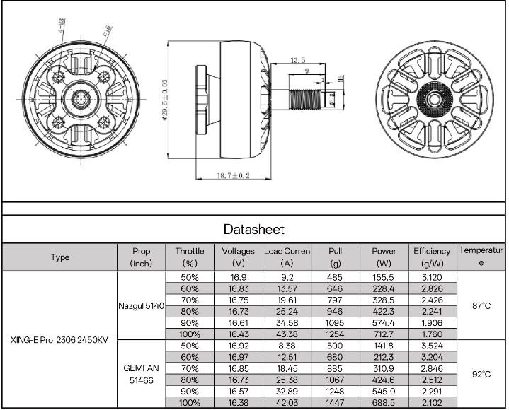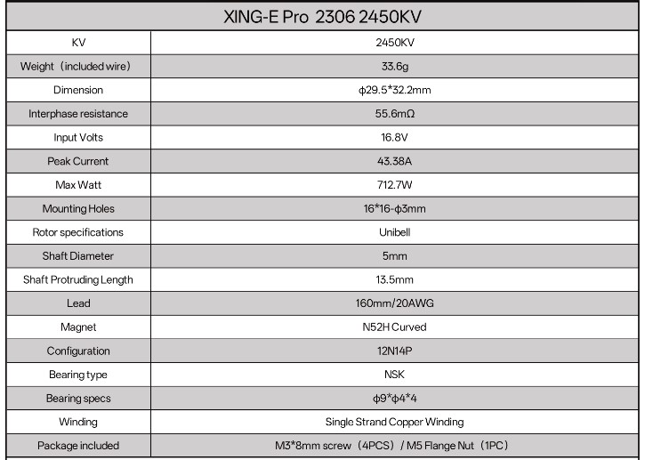 Gelince Haber VerXING-E Pro 2306 2450KV 4-6S FPV Drone Motoru, FPV yarışları için son derece güçlü ve kuvvetli FPV motorlarıdır. Bilinen XING performansıyla mükemmel bir seçimdir. Kaliteye odaklanan XING-E Pro serisi, güçlü ve dayanıklı, uygun fiyatlı motorlardır. Bu 2306 boyutlu motor, yüksek mukavemetli 5 mm çelik içi boş şaft, performans için tek telli sargılar, M3 şaft vidası ve daha büyük 9x4x4 mm NSK rulmanlara sahiptir.
