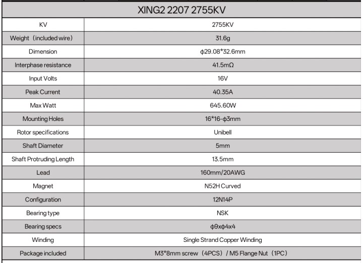 Gelince Haber VerXING2 2207 2755KV 4-6S FPV Drone Motoru, tepki süresini önemli ölçüde azaltmak için yeni merkez yuvalı N52H kavisli ark mıknatıslar kullanılmıştır.