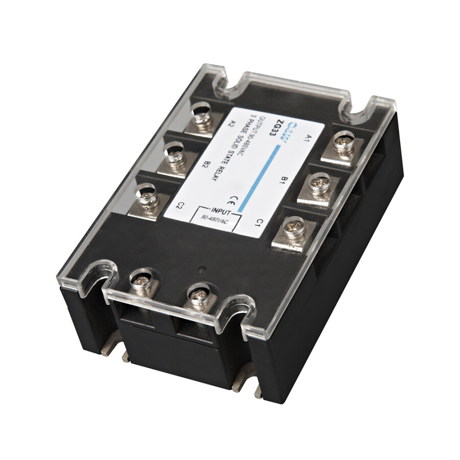 ZG33-340A 3-Phase Solid State Relay 40A - 90-250VAC Input 90-480VAC Output. Solid state relays operate like conventional relays or contactors in their intended applications. Because they are made of semiconductor circuitry, they have a longer lifespan and are more durable than other products with mechanical contact outputs.