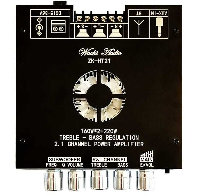 ZK-HT21 2x160W + 220W Bluetooth 5.0 2.1 Channel Amplifier Module TDA7498E has 5.0 Bluetooth version and 2.1 channel It is a 2x160W + 220W amplifier module with 2x160W + 220W support. It has short circuit protection, overcurrent and overheating protection. Since it has Bluetooth 5.0 version, it has unobstructed transmission up to 15 meters. In addition to Bluetooth support, it also has aux support.